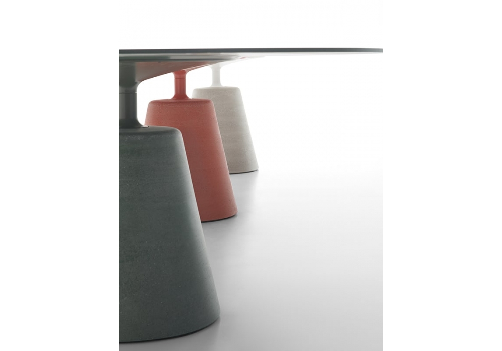 Rock Table mit Breiter Basis von Jean Marie Massaud für MDF Italia entworfen, ist ein Tisch mit Betonfuß in verschiedenen Farben, immer kombiniert mit der Tischplatte aus lackiertem Holz, natürlichem oder gestrahltem Beton, gehärtetem Glas. In verschiedenen Größen erhältlich.