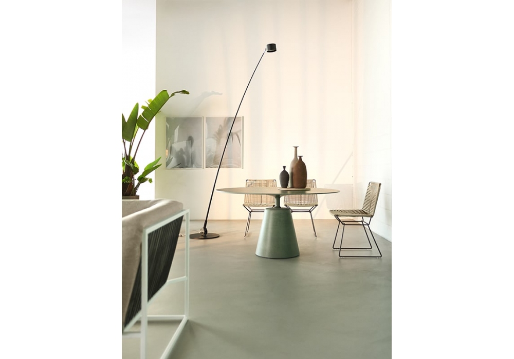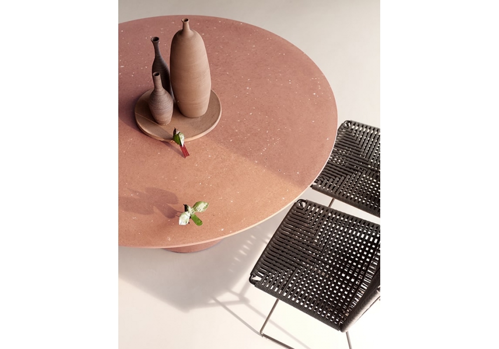 N.B. Der Tisch mit Tischplatte aus Beton oder gestrahltem Beton kann auch im Außenbereich verwendet werden. Alle Tische mit Glasplatte sind 71,5 cm hoch.