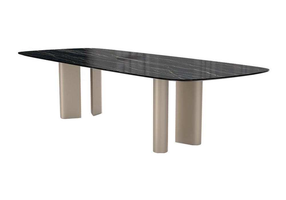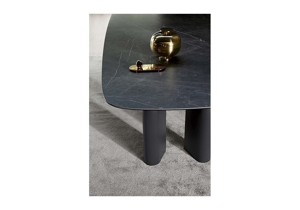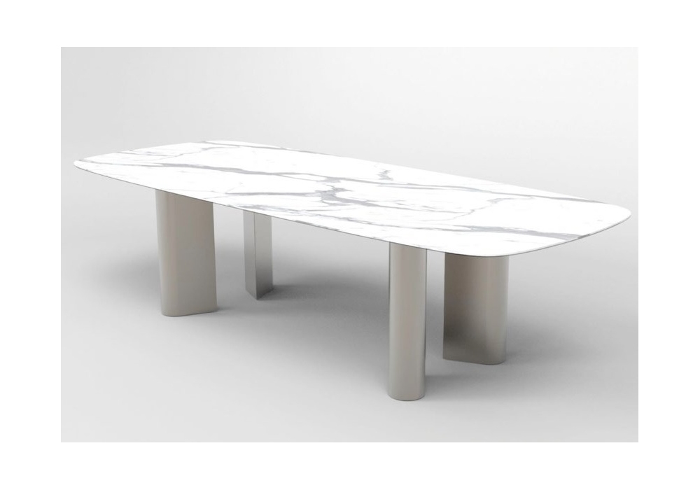 Geometric von Alain Gilles für Bonaldo entworfen, ist ein Tisch mit Metallbeinen und Platte aus Keramik, Marmor oder Holz. Erhältlich in verschiedenen Größen.