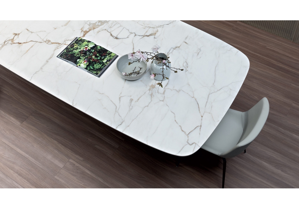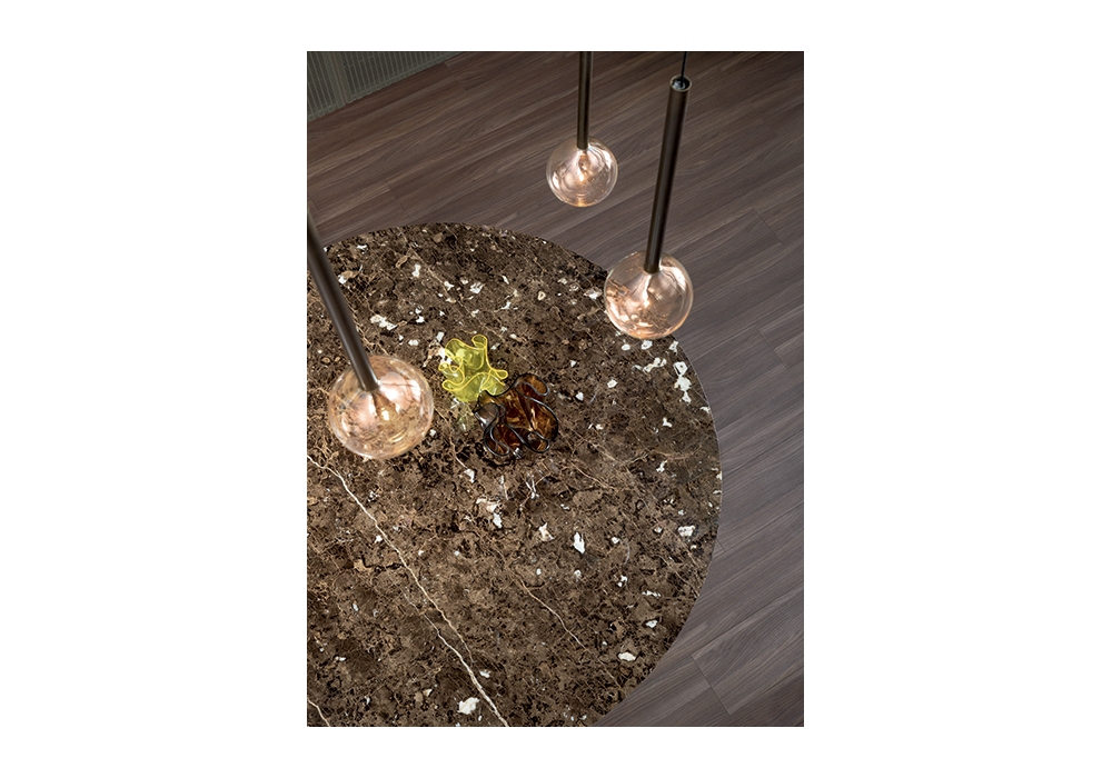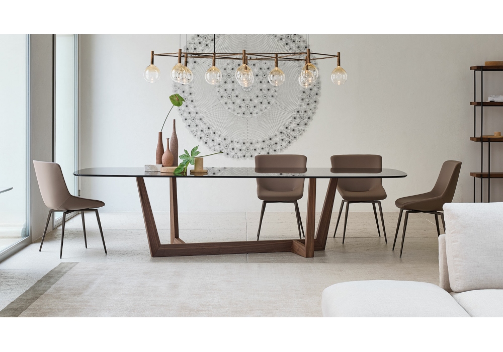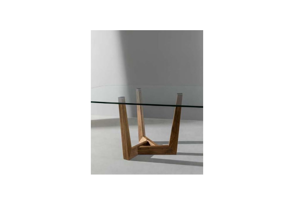 Art Wood von Gino Carollo für Bonaldo entworfen, ist ein Tisch mit Tischplatte aus Glas oder Keramik. Holzsockel aus amerikanischem Nussbaum. Auch verfügbar in verschiedenen Abmessungen.