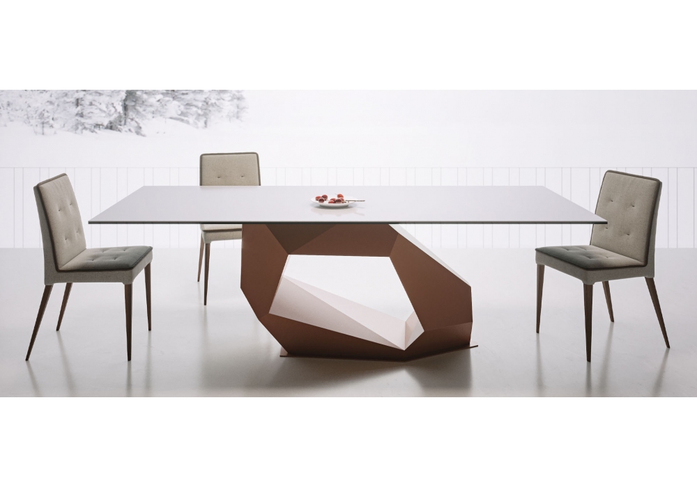 Raw Diamond von Liu Jo Living Collection entworfen ist ein Tisch. Die Platte ist aus gehärtetem, hinterlackiertem Glas oder aus Keramikglas erhältlich. Untergestell aus gebogenem und pulverbeschichtetem Metall. Erhältlich in zwei Dimensionen und in zwei Modellen.