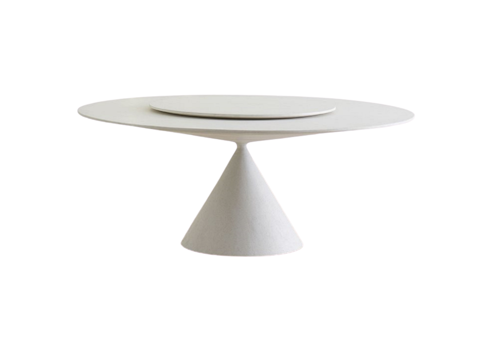 Clay von Marc Krusin für Desalto entworfen, ist ein Tisch mit Polyurethanboden und MDF-Platte, der mit einer drehbaren Lazy Susan-Mittelstückschale ausgestattet ist.