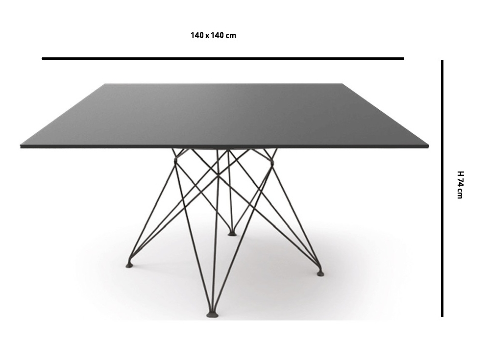 Arcos von Pascal Mourgue für Tonon entworfen, ist ein Tisch mit einer Struktur aus Stahlstab, der in mattem Schwarz lackiert ist. Das Oberteil ist in Linoleum oder Eiche in verschiedenen Größen erhältlich.