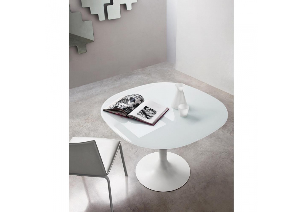 Flûte von Studio Sovet für Sovet entworfen, ist ein geformt Tisch mit Metallfuß und Platte aus Glas oder Keramik . Verfügbar in mehreren Ausführungen und Abmessungen.