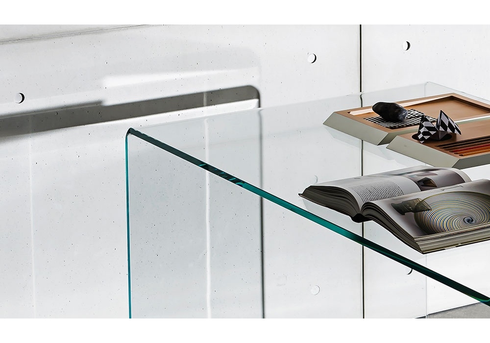 Bridge Order von Studio Sovet für Sovet entworfen, ist ein Tisch aus transparentem oder lackiertem gebogenem Glas. Verfügbar in mehreren Ausführungen und Abmessungen.