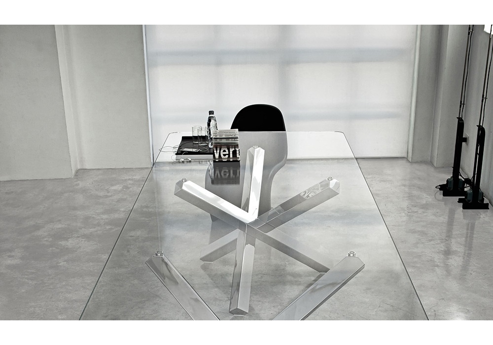 Aikido Two Bases von Studio Sovet für Sovet entworfen, ist ein Tisch aus Holz- oder Metallfuß und Glas- oder Keramikplatte. Verfügbar in mehreren Ausführungen und Abmessungen.
