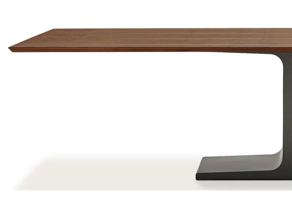 Palace von Lievore, Altherr, Molina für Sovet entworfen, ist ein Tisch mit Holzplatte und Metallfuß. Verfügbar in mehreren Ausführungen.
