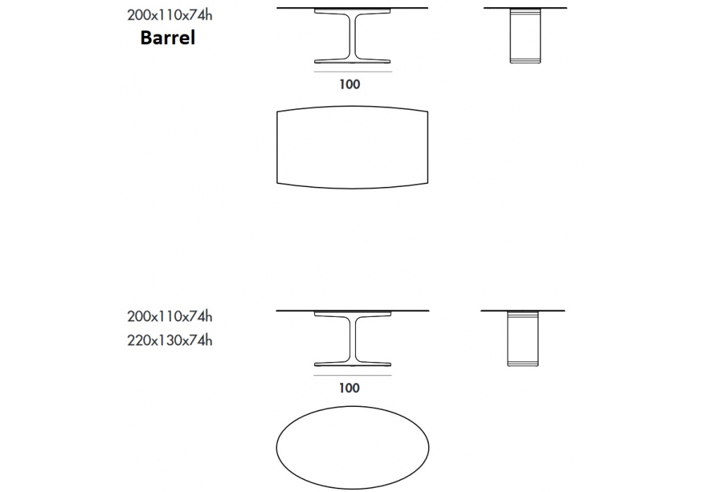 | Abmessungen | 200 x 100 x H 74 cm; 200 x 100 x H 74 cm ( Barrel ); 220 x 130 x H 74 cm |