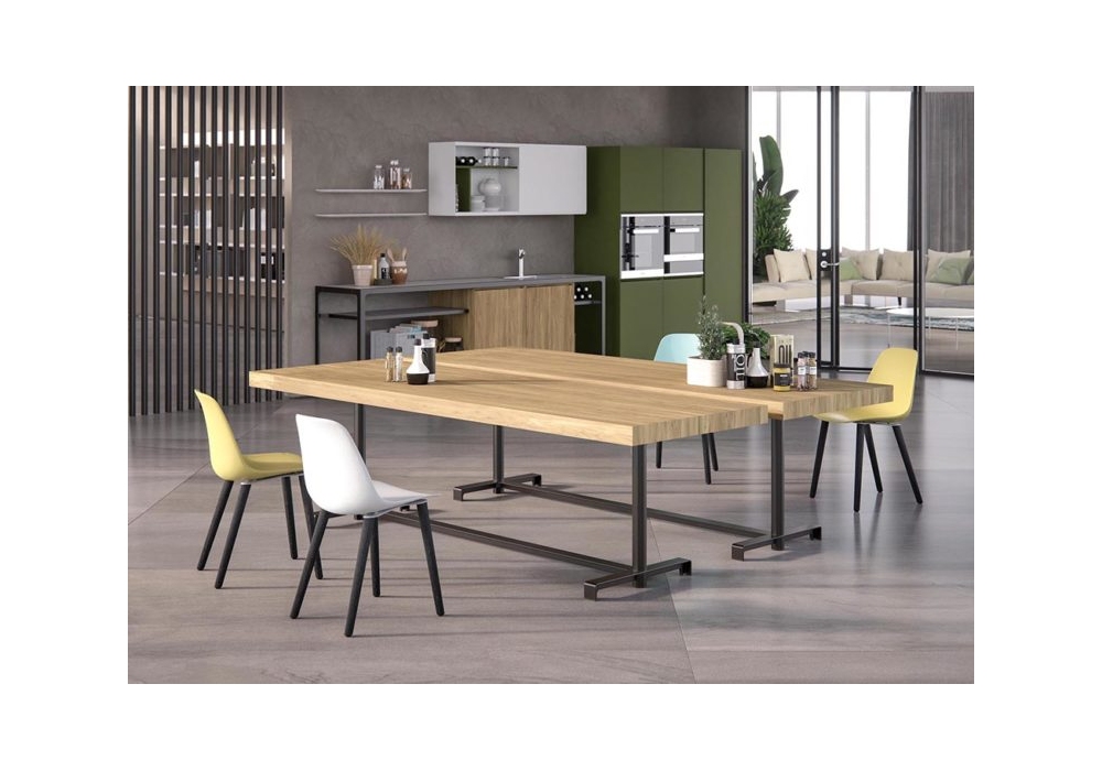Sanmarino von Estel R & D für Estel entworfen, ist ein Tisch mit lackierter Metallstruktur und Dielenplatte in verschiedenen Essenzen. Dekorationsgegenstände nicht im Preis inbegriffen.