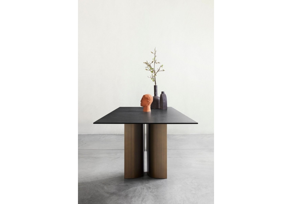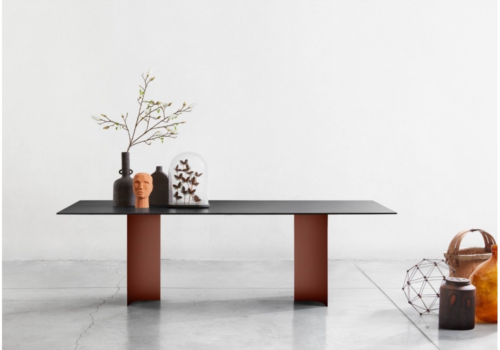 Gullwing von Gabriele & Oscar Buratti für Lema entworfen, ist ein Tisch mit einer lackierten oder matt lackierten Metallstruktur und einer Platte aus Holz, Marmor, Porzellan und mit Ton und rekonstruiertem Marmor. Verfügbar in mehreren Ausführungen und Abmessungen.