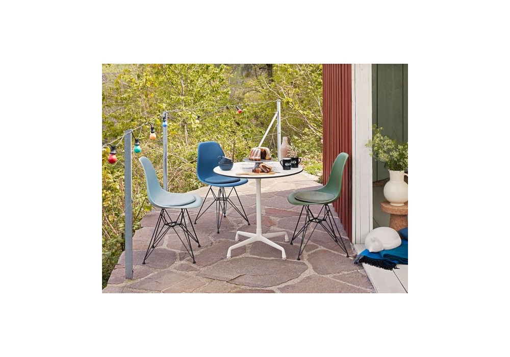 Eames Contract von Charles & Ray Eames für Vitra entworfen, ist ein Tisch mit einem stabilen Sockel aus Aluminium. Erhältlich in verschiedenen Ausführungen und Abmessungen. Die pulverbeschichtete Basis kann mit einer Laminatplatte für den Außenbereich kombiniert werden.