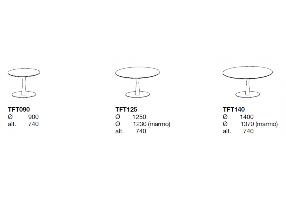 | Abmessungen | Ø 90 cm x H 74 cm; Ø 125 cm x H 74 cm; Ø 140 cm x H 74 cm. |