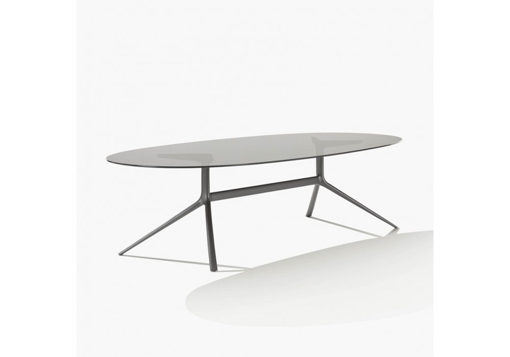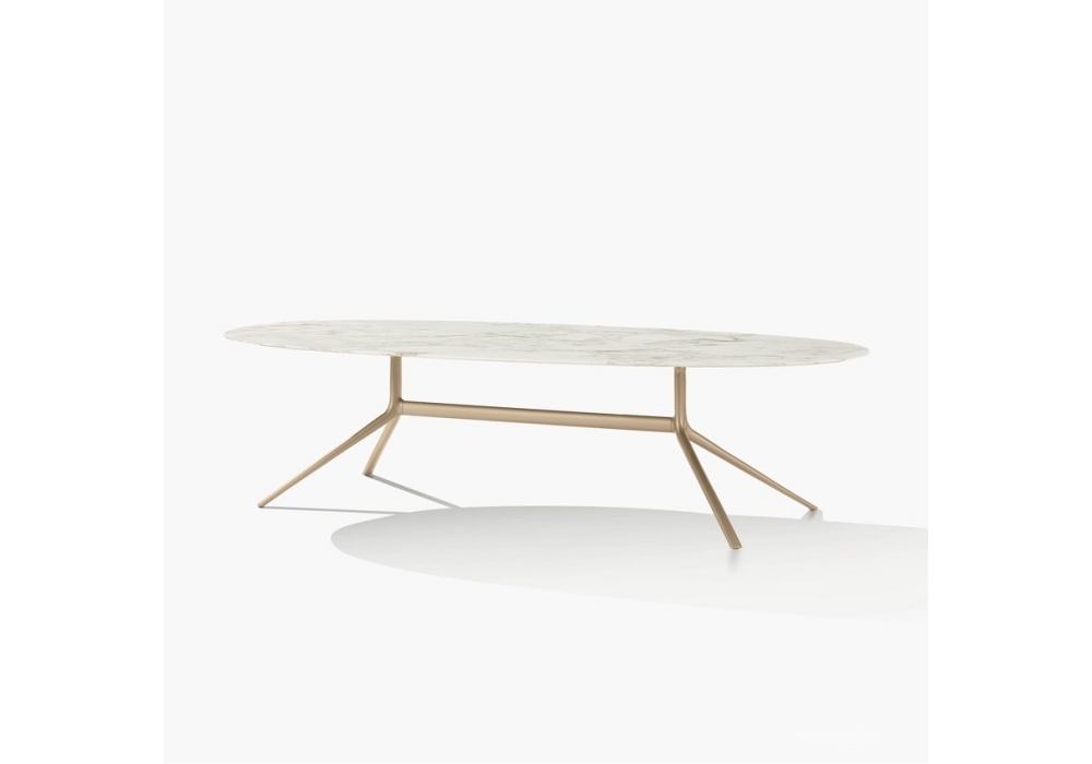 Mondrian, von Jean-Marie Massaud für Poliform entworfen, ist eine Tischkollektion mit lackiertem Metallfuß und