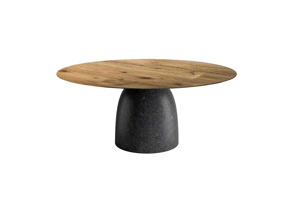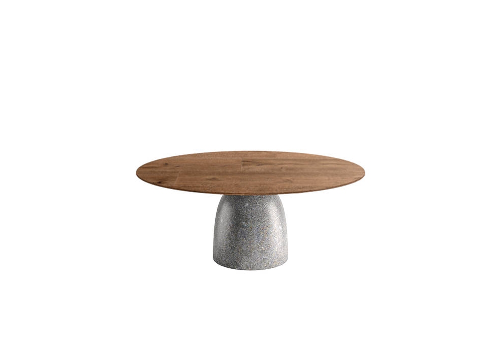 Janeiro von Bartoli Design für Lago entworfen, ist ein runder Tisch mit Betonsockel und Holzplatte. Es ist in verschiedenen Ausführungen und Größen erhältlich.