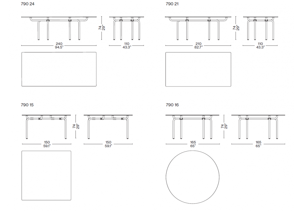 | Abmessungen | 240 x 110 x H 74 cm; 210 x 110 x H 74 cm; 150 x 150 x H 74 cm; Ø 165 x H 74 cm. |