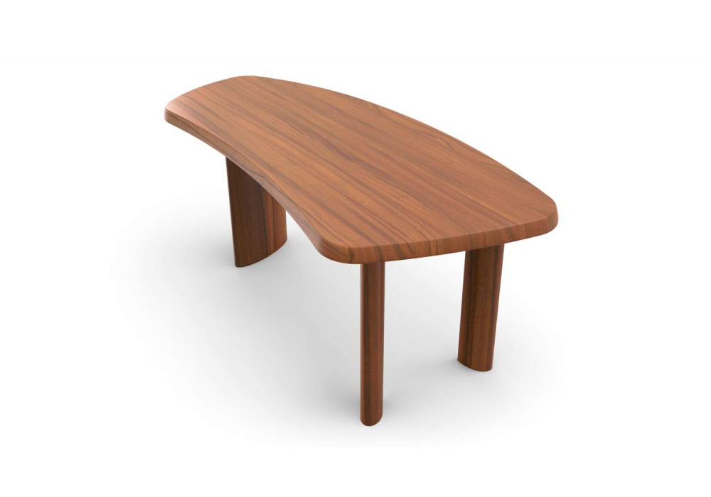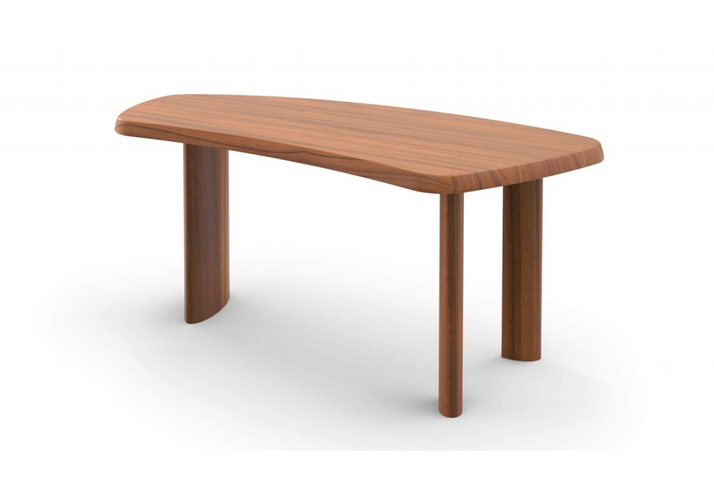 538 Petit Bureau En Forme Libre von Charlotte Perriand für Cassina entworfen, ist ein Freiformtisch aus massivem Canaletto-Walnuss oder Mahagoni oder aus matt lackiertem Holz. Schwarze oder Tabakledermatte. Verfügbar in mehreren Ausführungen.