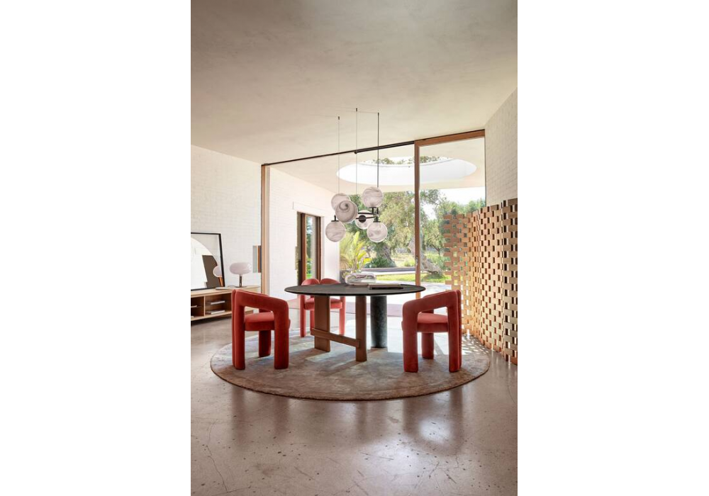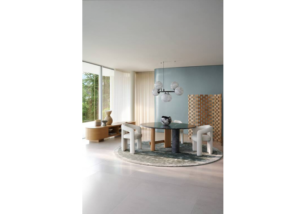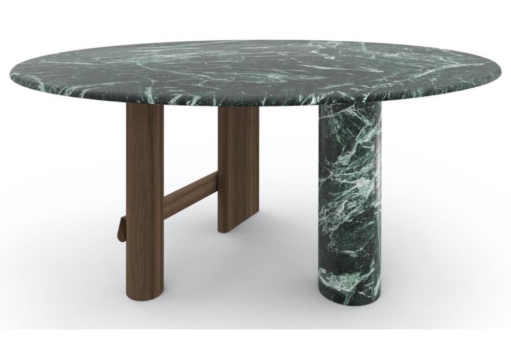 559 Sengu von Patricia Urquiola für Cassina entworfen, ist ein Tisch mit Tisch- und Säulenfuß aus Marmor und Holzbeinen. Verfügbar in mehreren Ausführungen und Abmessungen.