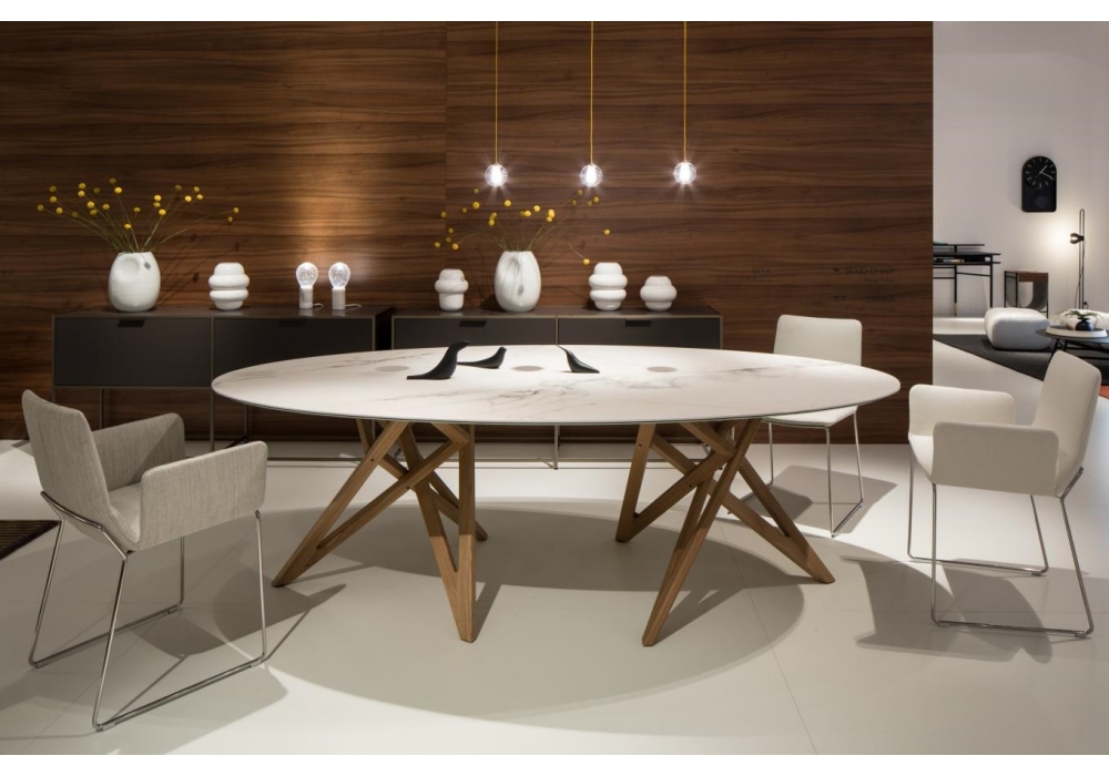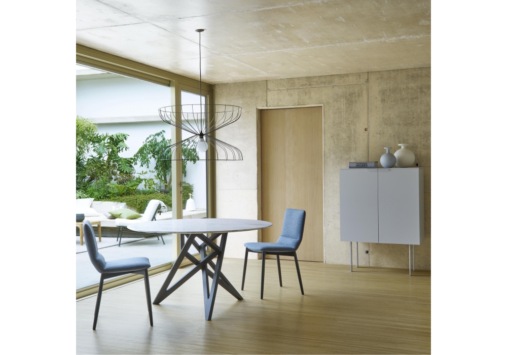 Ennea von Vincent Tordjman für Ligne Roset entworfen, ist ein Esstisch mit Beinen verfügbar in 2 Ausführungen und Tischplatte aus Keramik Steinzeug oder Carrara-Marmor (nur für runde Version). Auch verfügbar in 3 Abmessungen.
