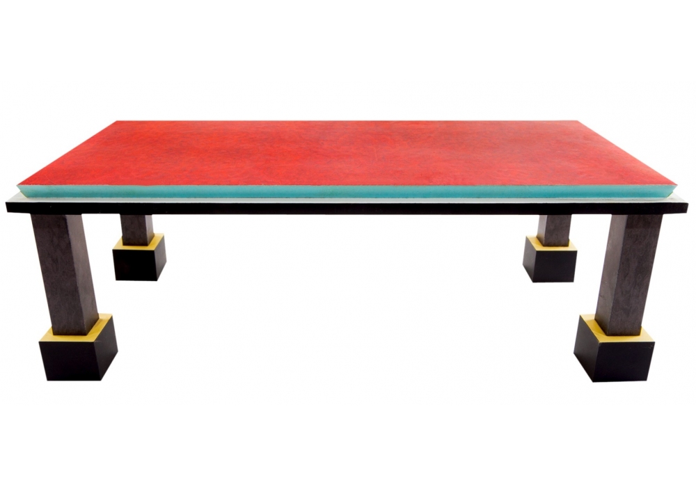 Palm Spring von Ettore Sottsass für Memphis Milano entworfen, ist ein Tisch aus Bruyere und Kunststofflaminat.