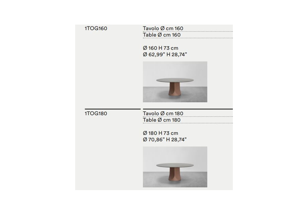 | Abmessungen | Ø 160 x H 73 cm; Ø 180 x H 73 cm. |