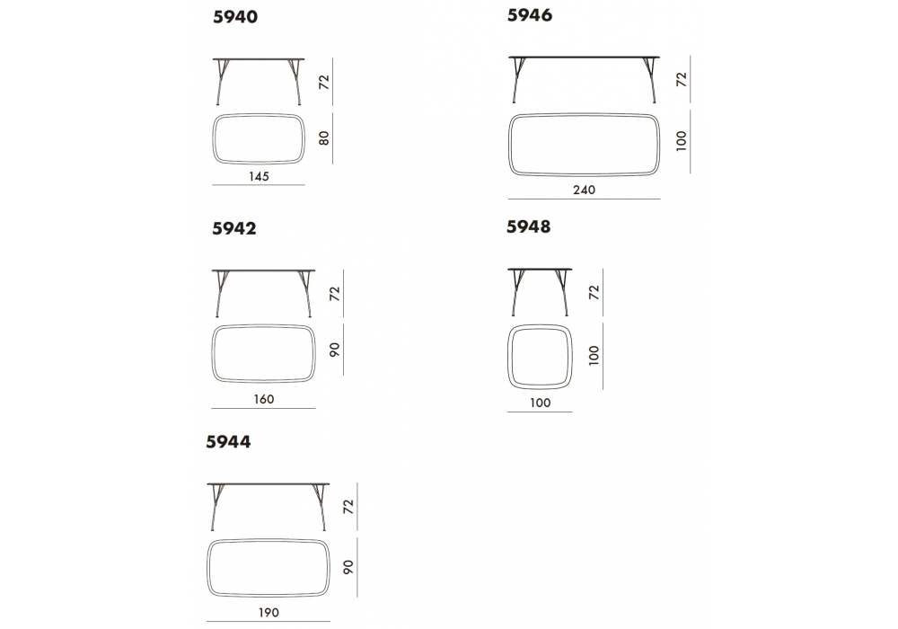 | Tischplatte | 145 x 80 cm; 160 x 90 cm; 190 x 90 cm; 240 x 100 cm; 100 x 100 cm. |