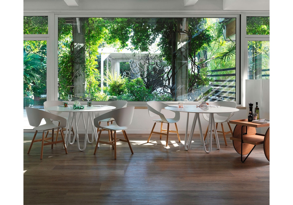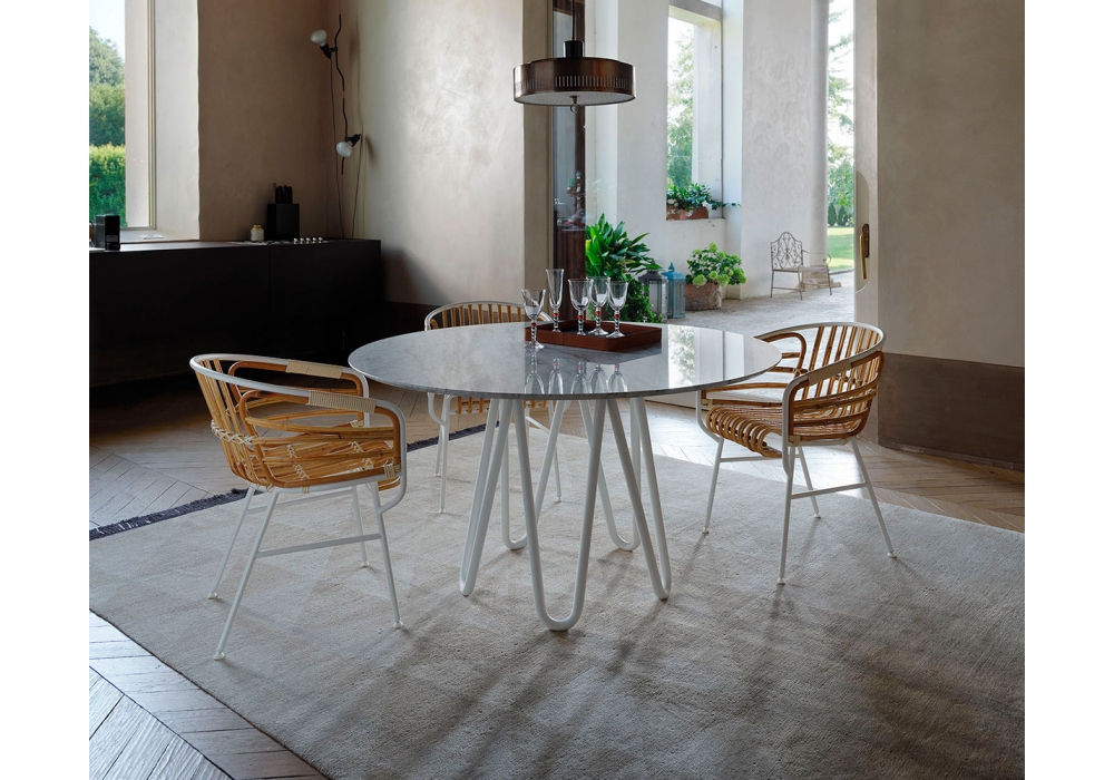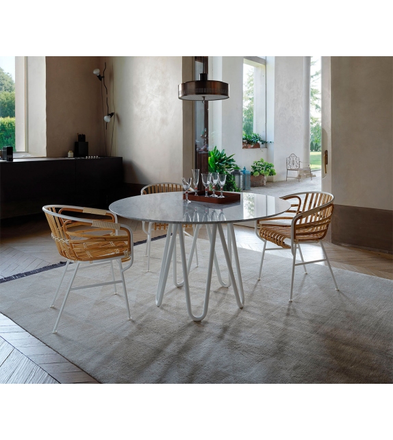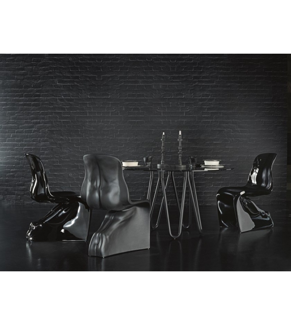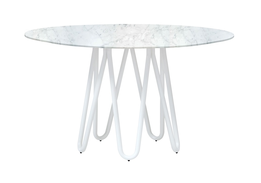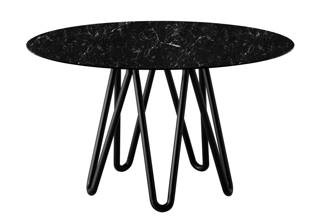 Meduse von GamFratesi für Casamania entworfen, ist ein Tisch mit Beinen aus lackiertem Metall und Platte aus Marmor oder Rauchglas.