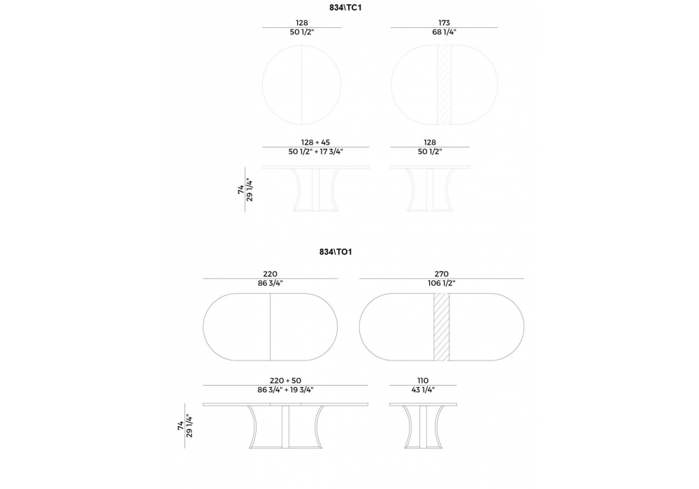 | Abmessungen | Ø 128 + 45 x 74 cm; 220 + 50 x 110 x H 74 cm. |