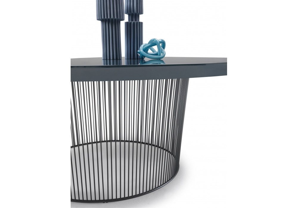 Berry von Design Center für Flexform entworfen, ist ein Tisch mit Metallstruktur und Holzplatte.