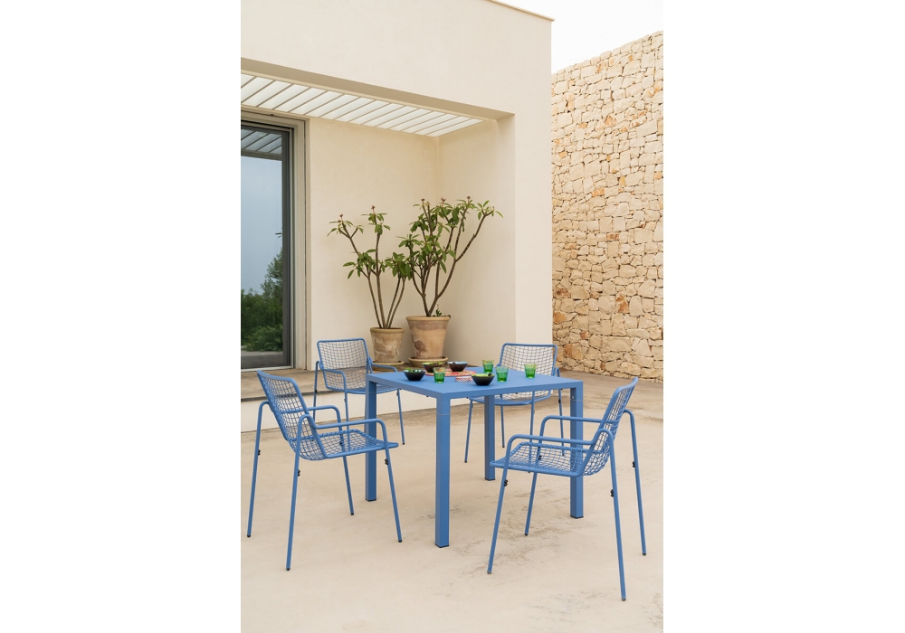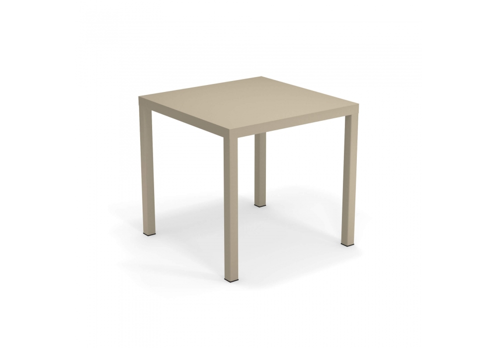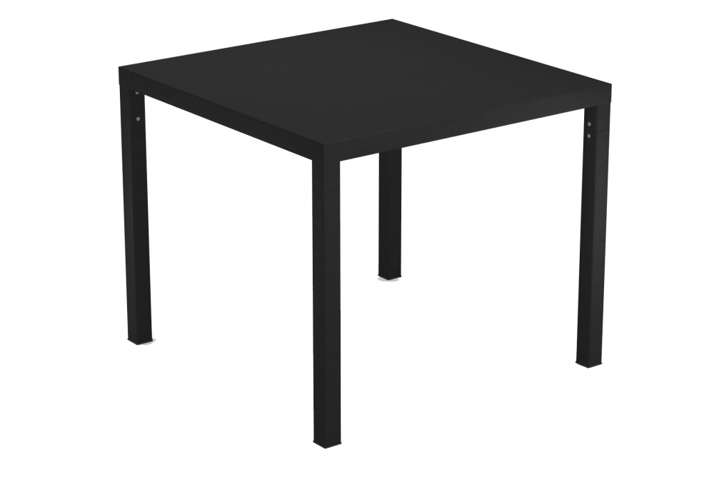 Nova, entworfen von EMU, ist ein quadratischer Stahl Tisch, der dank einer speziellen Technologie in den Materialien, die sie auf jeder Art von Bodenbelag stabilisieren, das Problem der Instabilität auf unebenen Böden löst. Erhältlich in verschiedenen Größen und Ausführungen.