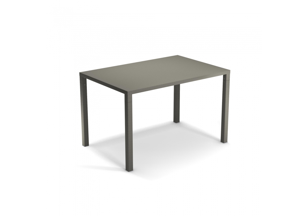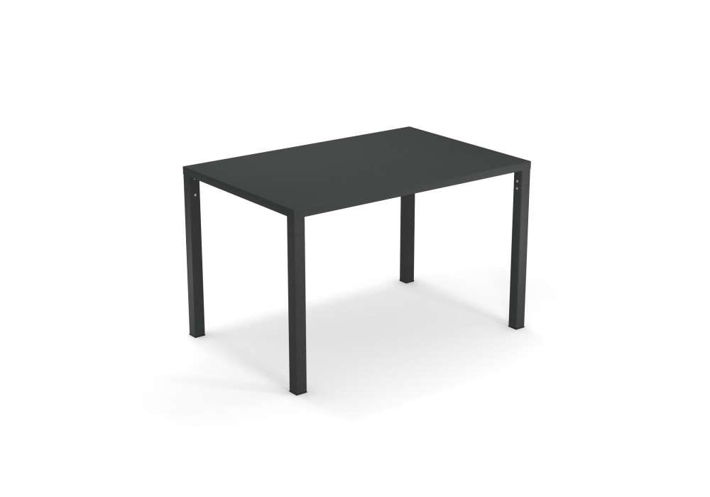 Nova, entworfen von EMU, ist ein rechteckiger Stahl Tisch, der dank einer besonderen Technologie in den Materialien, die sie auf jeder Art von Bodenbelag stabilisieren, das Problem der Instabilität auf unebenen Böden löst. Erhältlich in verschiedenen Ausführungen.
