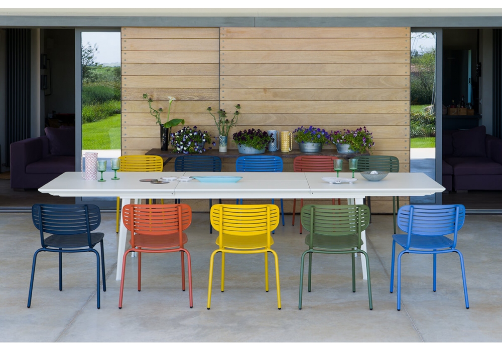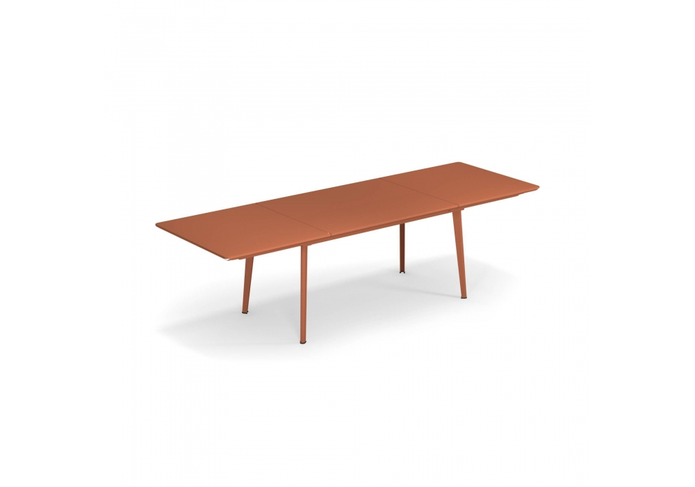 Plus4, entworfen von EMU, ist ein Erweiterbare Tabelle, die Platte ist aus gebogenem Stahl mit sorgfältiger Verarbeitung der Oberflächen für eine bessere ästhetische Wirkung, Der Butterfly-Mechanismus der internen Verlängerung macht die Öffnungsvorgänge äußerst praktisch. Erhältlich in verschiedenen Größen und Ausführungen.