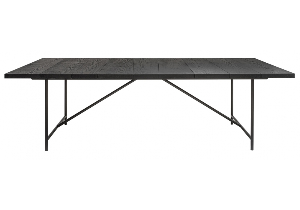 Nervi Table von Studio Primatesta Design für Riva 1920 entworfen, ist ein Tisch mit Massivholzplatte, mit asymmetrischen Latten, die mit einem Gelenk nebeneinander liegen; kombiniert mit einem Bockgestell mit essentieller und linearer Form aus hohlem Eisenrohr.