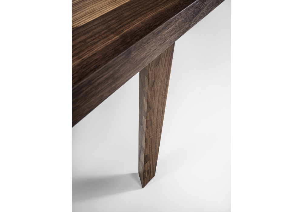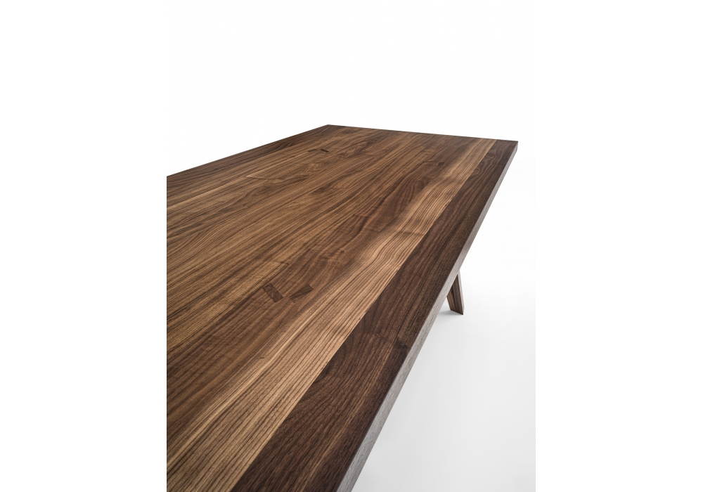 Dovetail Table von Mario Bellini und Raffaele Cipolletta für Riva 1920 entworfen, ist ein Tisch komplett aus Massivholz, Platte mit geleimten Brettern und Bein mit besonderer Schwalbenschwanzverarbeitung.