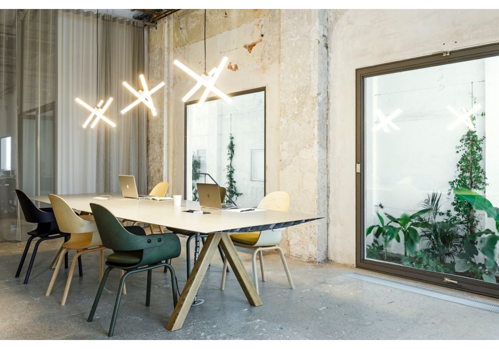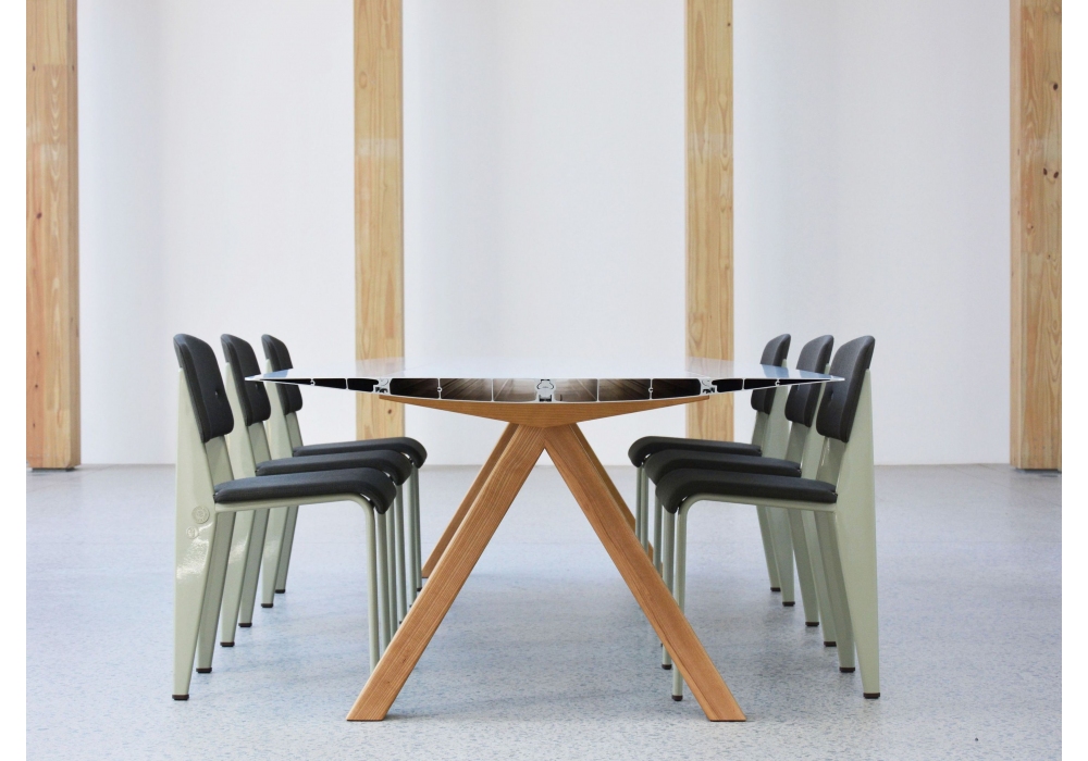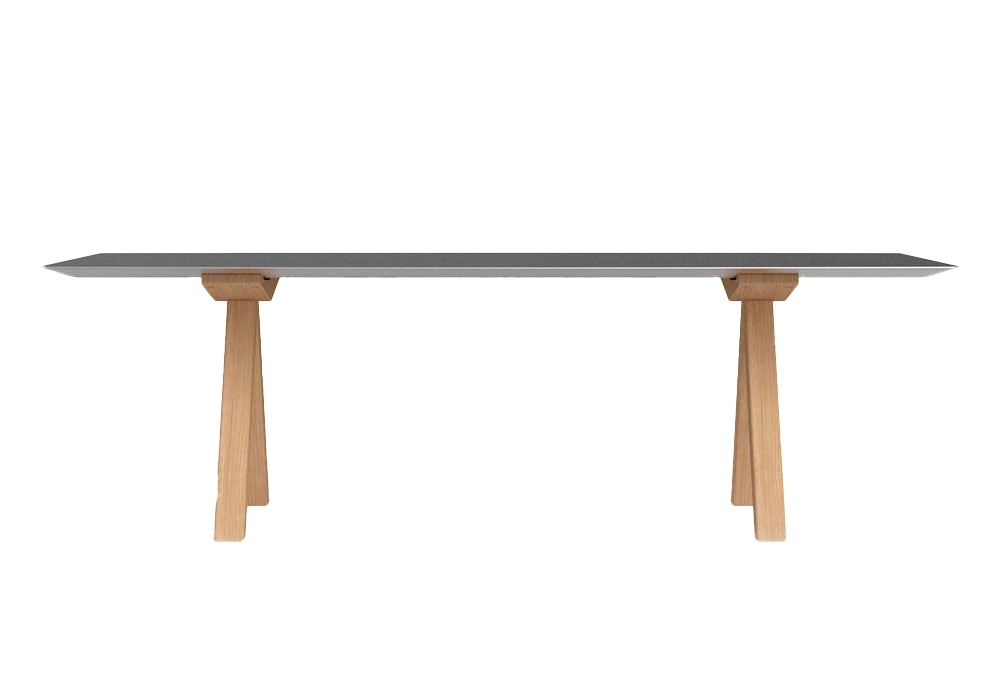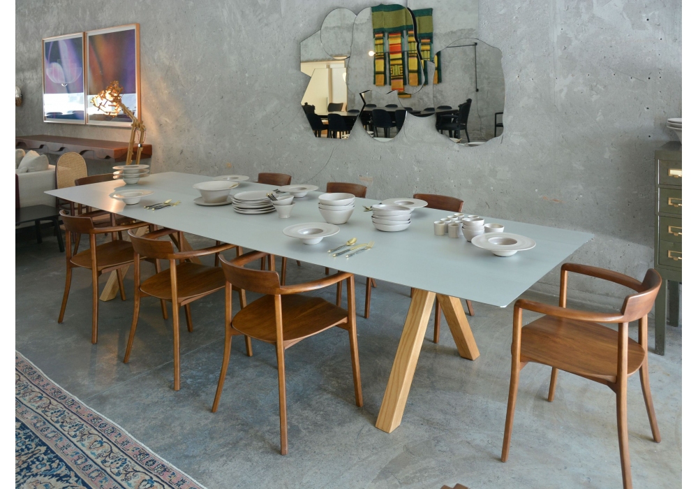 Table B 120 wurde von Konstantin Grcic für BD Barcelona entworfen und ist ein Tisch mit offenen Enden, die auf 45º geschnitten sind. Möglichkeit der Laminierung der Oberfläche in natürlichem Eicheneffekt mit lackierter Oberfläche. Beine in Eiche natur. Erhältlich in verschiedenen Größen.