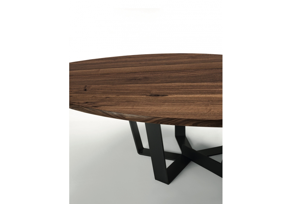 Kohi Table von Terry Dwan für Riva 1920 entworfen, ist ein runder Tisch mit Massivholzplatte. Gekennzeichnet durch eine eiserne radiale Basis. Verfügbar in mehreren Ausführungen und Abmessungen.