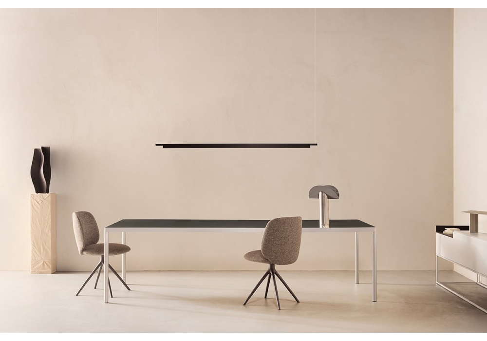Offset von Francesco Meda und David Lopez Quincoces für MDF Italia entworfen, ist ein Tisch, der in verschiedenen Größen erhältlich ist, mit Beinen aus stranggepresstem Aluminium mit einem runden Querschnitt von 40 mm, in verschiedenen Ausführungen. Das Oberteil besteht aus verschiedenen Materialien in einer breiten Farbpalette.