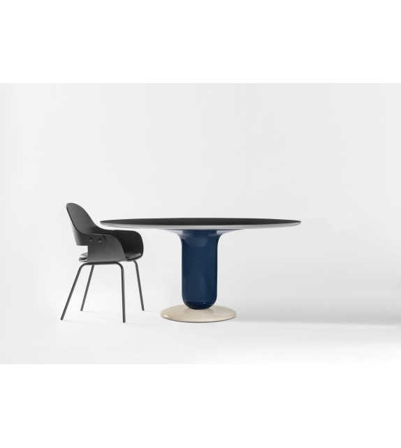 Explorere 4, entworfen von Jaime Hayon für BD Barcelona, ist ein Esstisch, der aus der Idee der Inklusion geboren wurde und die Hindernisse des Tisches beseitigt, indem die Seitenbeine entfernt werden. Erhältlich in verschiedenen Ausführungen und Farbkombinationen.