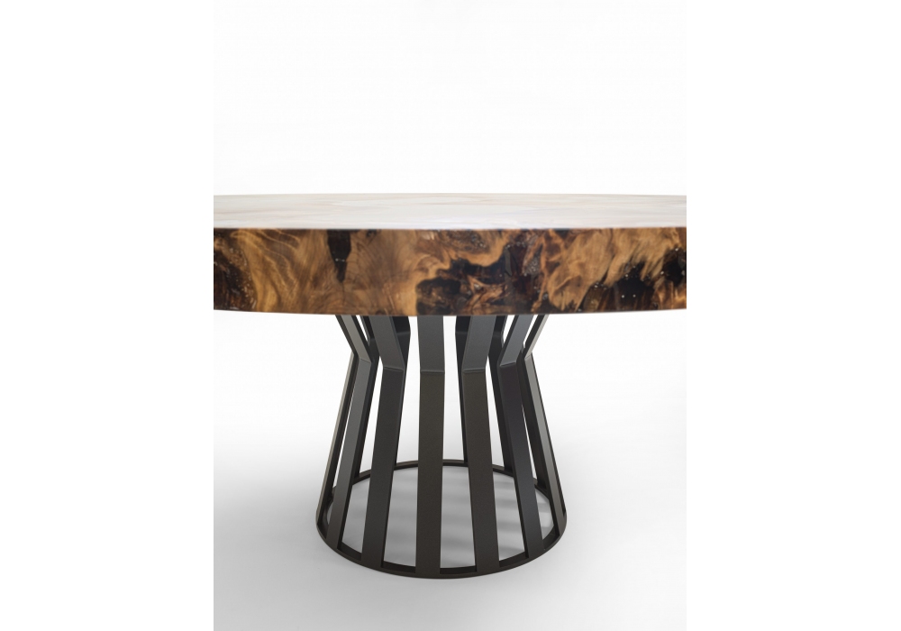 Kauri Round von C.R. & S. Riva 1920 entworfen, ist ein Tisch mit einer runden Platte aus massivem Kauri-Holz kombiniert mit einer Basis aus Eisenstreifen, die sich in der Mitte verjüngen.