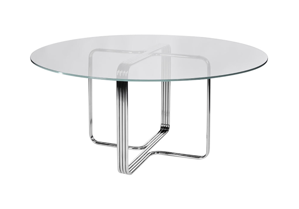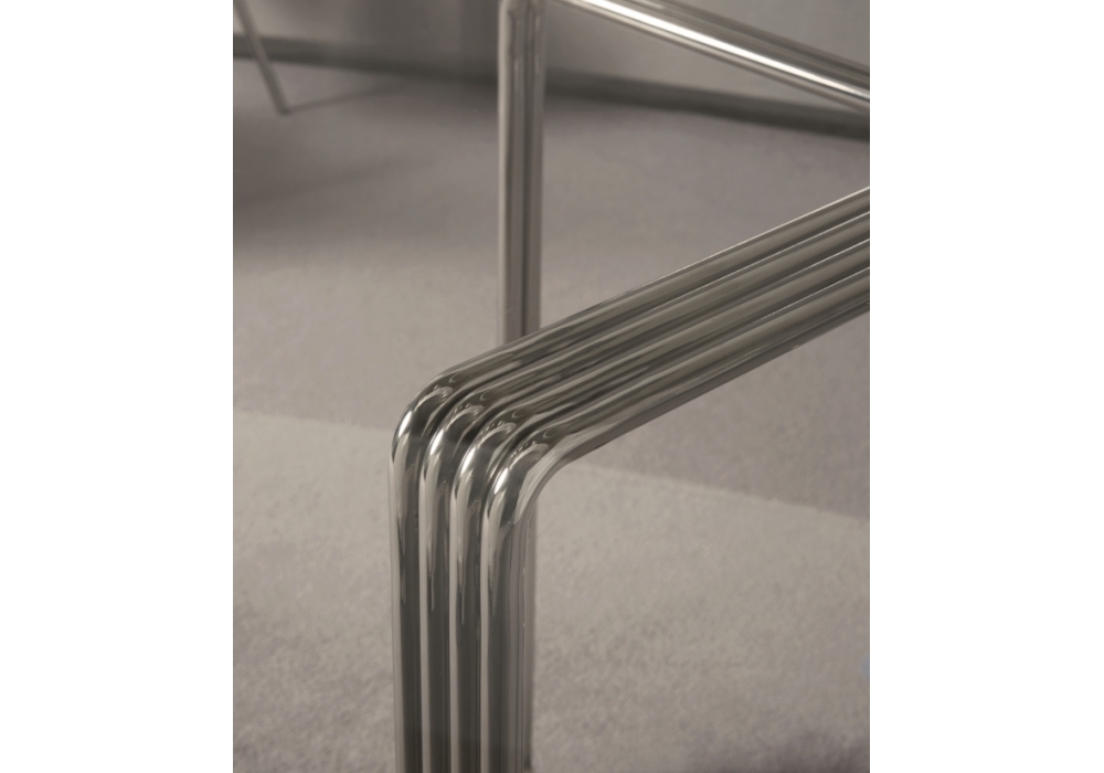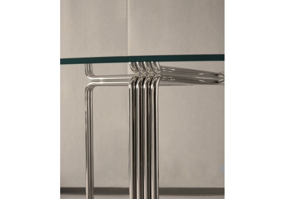 Musico, hergestellt und signiert von Lee Broom, ist ein Tisch mit Stahlrohrstruktur und Glasplatte, der in verschiedenen Ausführungen erhältlich ist.