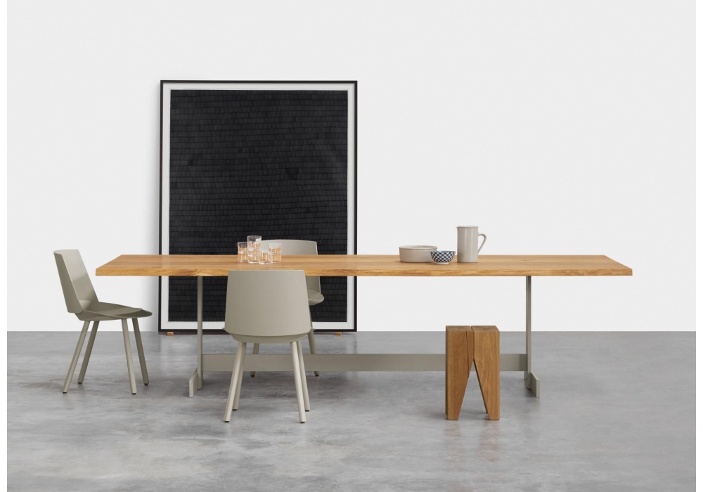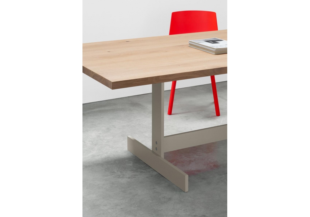 TA23 Kazimir Raw von Philipp Mainzer ist ein Tisch aus Eiche oder Nussbaum, der sich durch einen mutigen Mix aus geometrischen Formen und Materialien auszeichnet und eine Vielzahl von Interpretationen im privaten und öffentlichen Raum zulässt. Erhältlich in verschiedenen Größen. In den Größen 330 cm und 360 cm ist die galvanisierte gelbe Oberfläche nicht verfügbar.