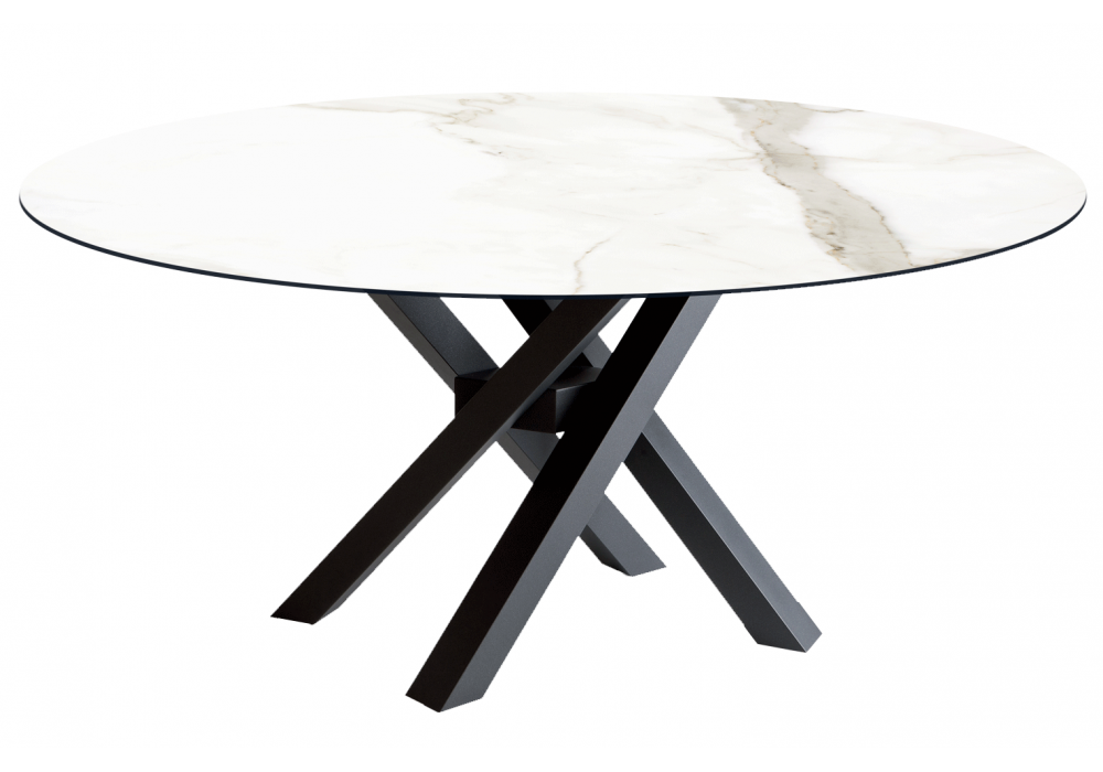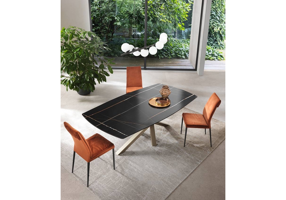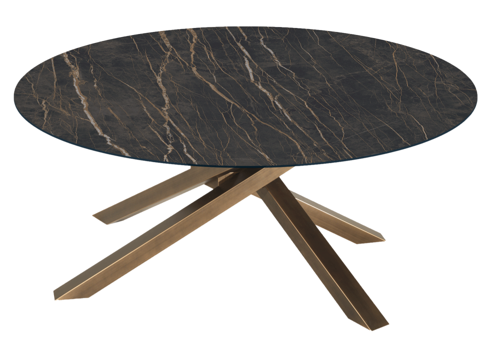 Shangai von Riflessi entworfen, ist ein Tisch mit geschichteter abgeschrägter Keramikplatte auf Glas. Sockel aus Aluminium mit verspiegeltem, lackiertem oder beschichtetem Edelstahl. Verfügbar in mehreren Abmessungen.