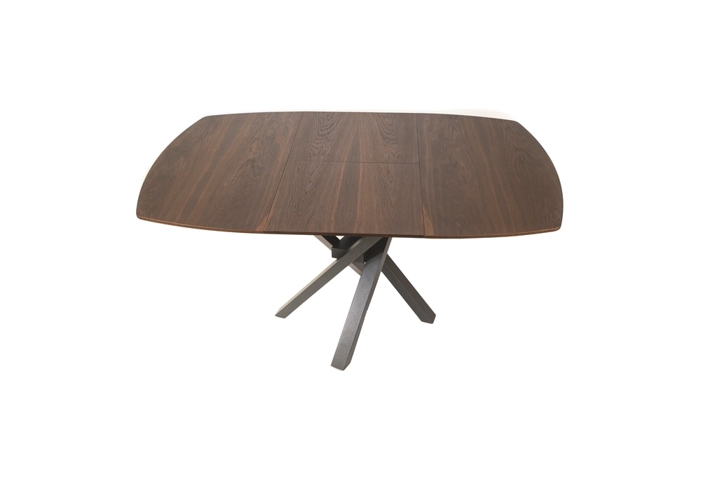 Round von Riflessi entworfen, ist ein ausziehbarer Tisch mit Sockel aus lackiertem Aluminium und Platte aus abgeschrägtem Holz. Verfügbar in mehreren Abmessungen.