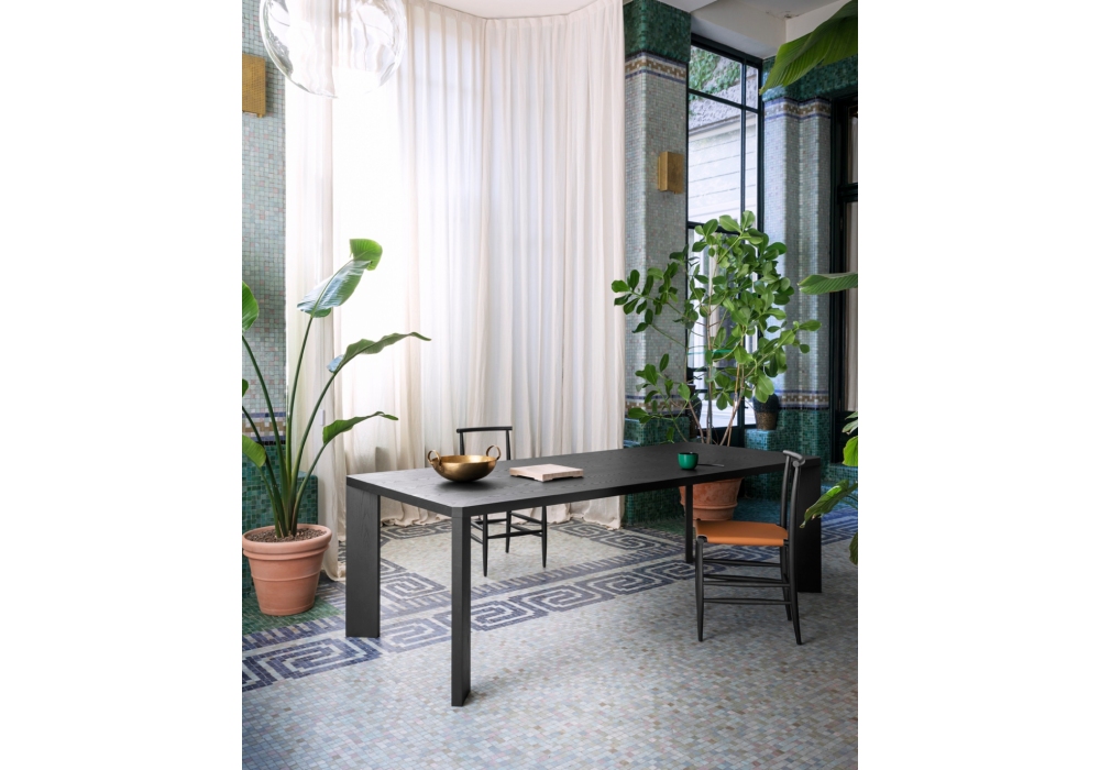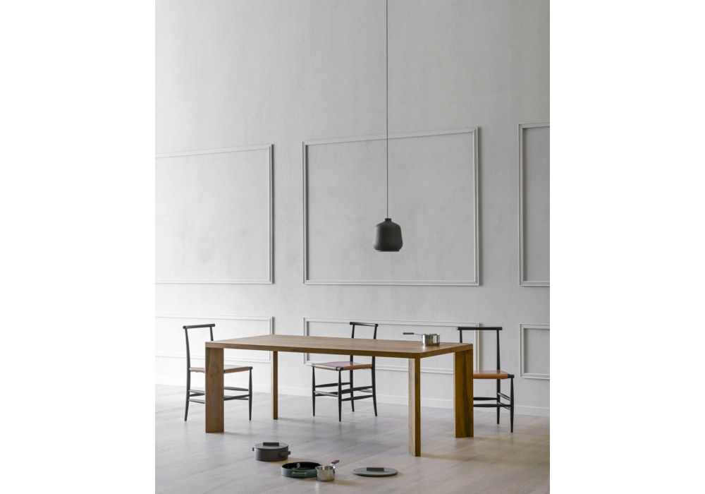 Manero von Paolo Cappello entworfen, ist ein Tisch mit Beinen und Tischplatte komplett aus Holz, erhältlich in verschiedenen Ausführungen.