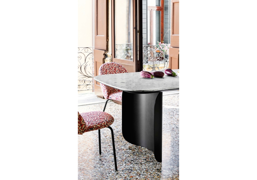 Barry von Alain Gilles entworfen, ist ein Tisch mit Metallbeinen, Tischplatte in lackierter Ausführung oder aus Holz, Keramik oder Marmor. Erhältlich in verschiedenen Ausführungen und Größen.