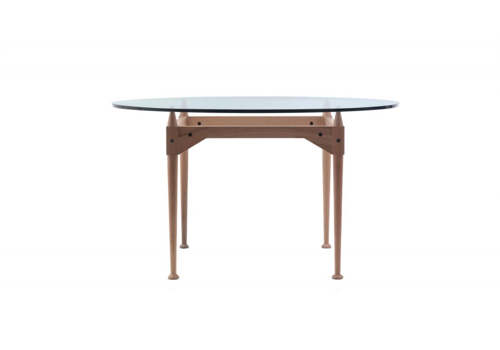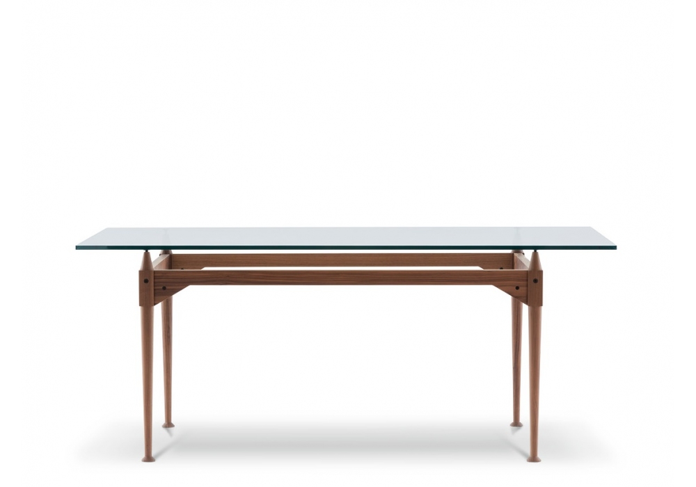 839 TL3 von Franco Albini für Cassina entworfen, ist ein Tisch mit einer Glasplatte und einem Untergestell aus massiver Esche oder Canaletto-Nussbaum.