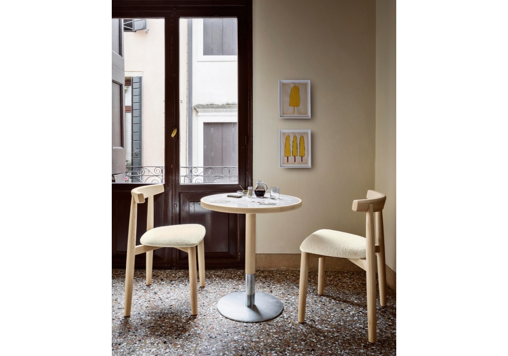 Briscola von Miniforms Lab entworfen, ist ein Tisch mit Keramik-, Marmor- oder lackierter Platte, erhältlich mit oder ohne Holzrahmen. Sockel aus verzinktem, schwarzem oder lackiertem Metall in der gleichen Lackierung wie die Platte. Erhältlich in verschiedenen Ausführungen und in runder oder quadratischer Form.