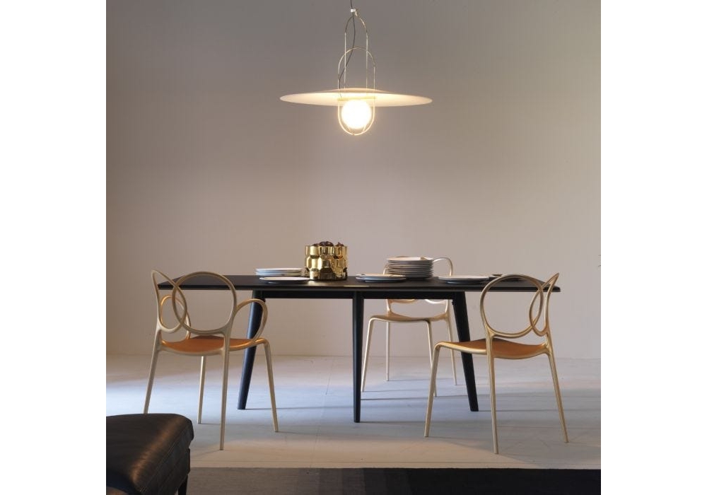 François, von Lievore Altherr für Driade entworfen, ist ein Tisch mit 60x60 Metallrohrstruktur, Beinen aus massiver Esche, Holzplatten, hinterlackiertem geätztem Glas (Valcucine-Glassortiment) und Marmor. Erhältlich in verschiedenen Größen. Nur für den internen Gebrauch.