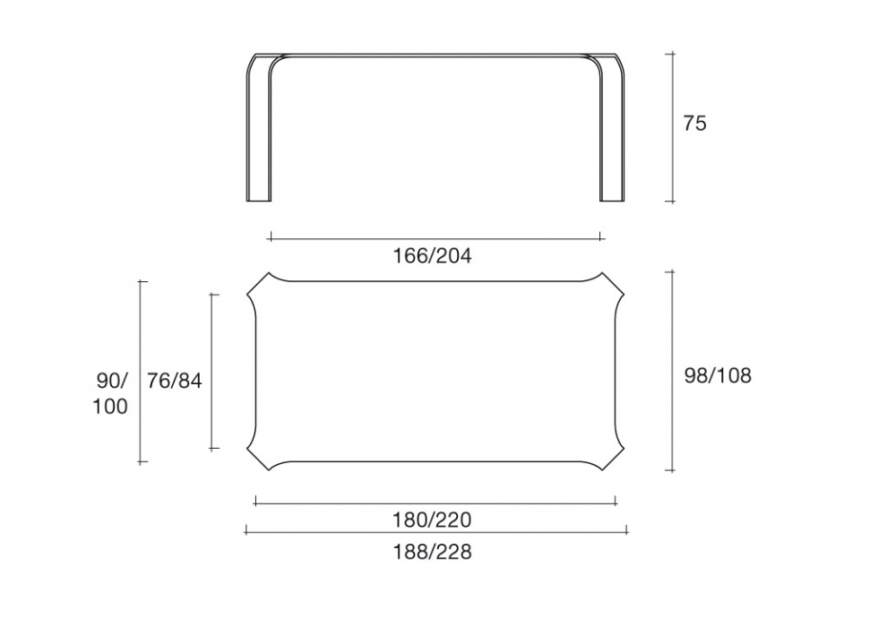 | Abmessungen | 188 x 98 x H 75 cm; 228 x 108 x H 75 cm. |