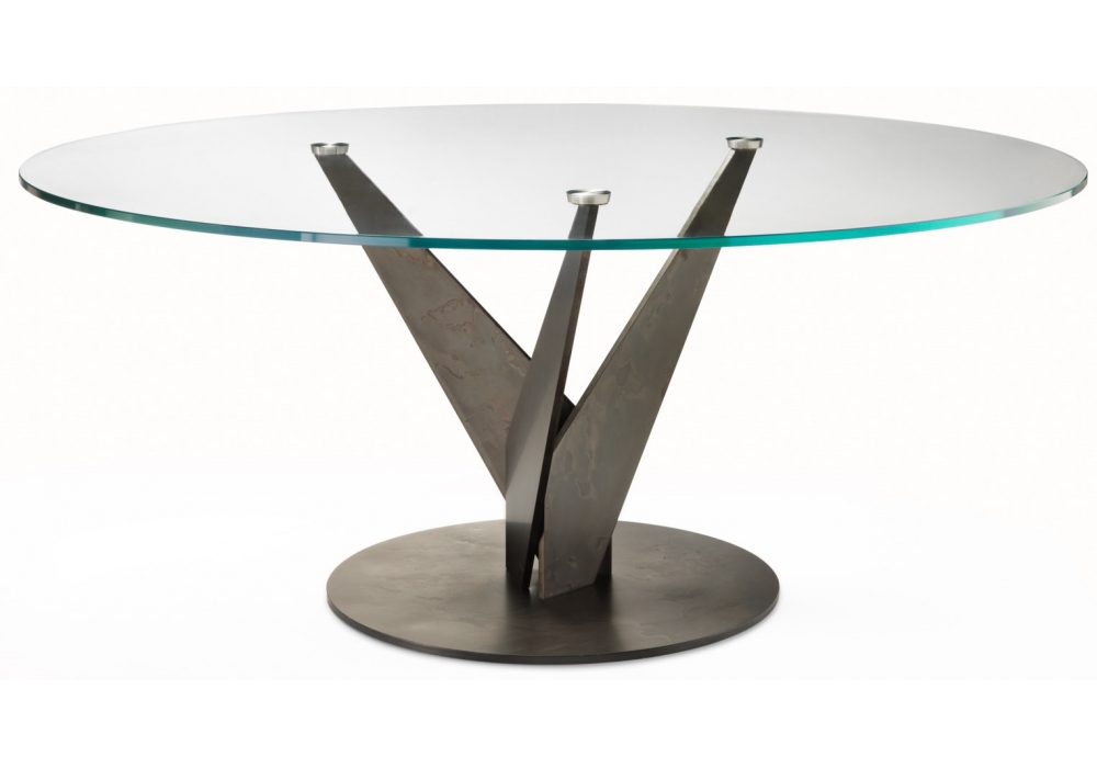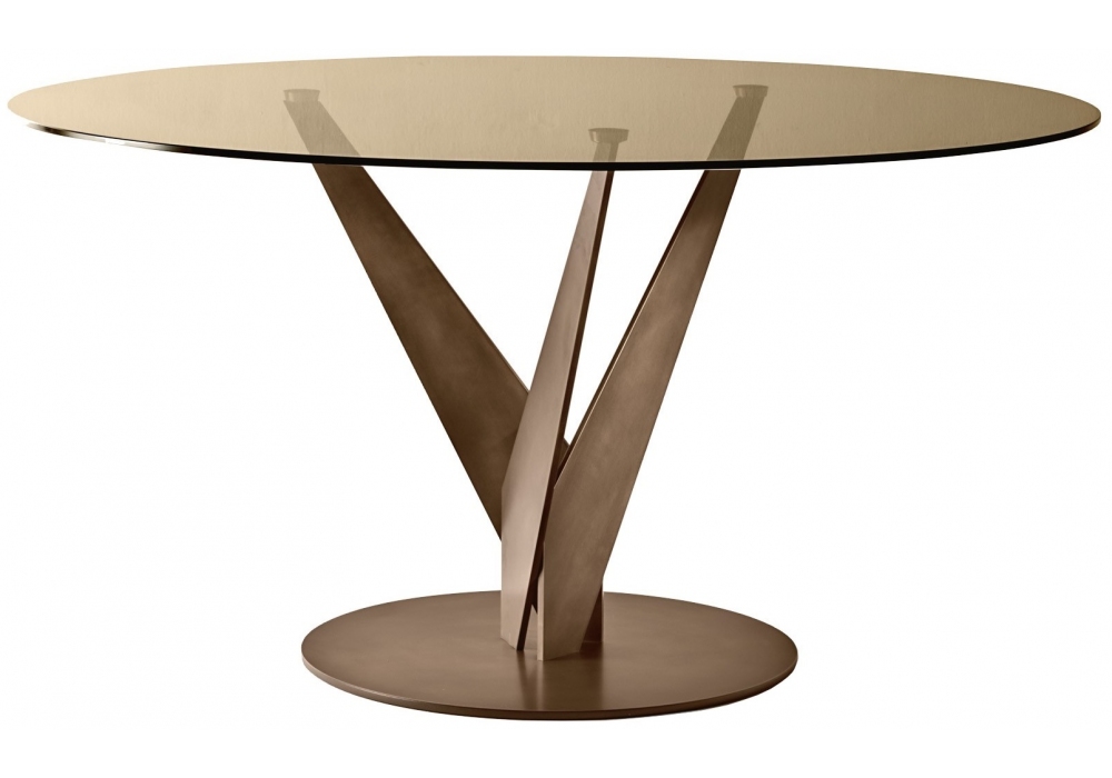 Epsylon von Fabio Di Bartolomei für Fiam entworfen, ist ein Tisch mit Platte aus 10 mm starkem gehärtetem Glas oder mit 16 mm geschichtetem Glas (Bronze oder Rauchglas). Sockel aus Metall in den Varianten Metall wolkeneffekt oder brünierte Messing; Befestigungsplatten aus Edelstahl oder Messing. Auch mit personalisiertem Oberteil erhältlich.