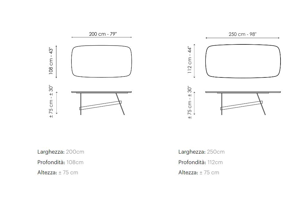 | Abmessungen | 200 x 108 x H ± 75 cm; 250 x 112 x H ± 75 cm. |
